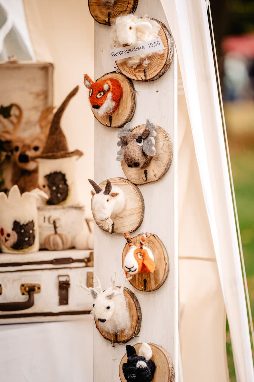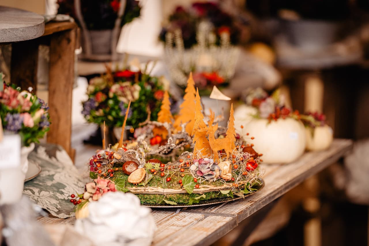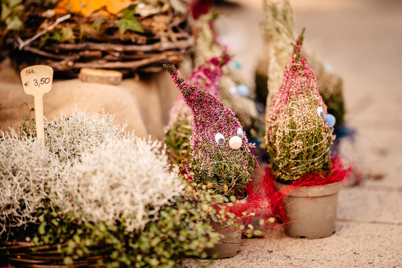 So bunt wie das Laub im Kurpark ist das bäuerlich-ländliche Angebot der rund 80 Aussteller:innen: Der Duft von Lavendel und Heidekraut liegt in der Luft, Gartengerät kann ebenso ausprobiert wie direkt mit nach Hause genommen werden und stilvolles Kunstgewerbe sowie wollwarme Bekleidung stimmen auf die hyggelige Jahreszeit ein.