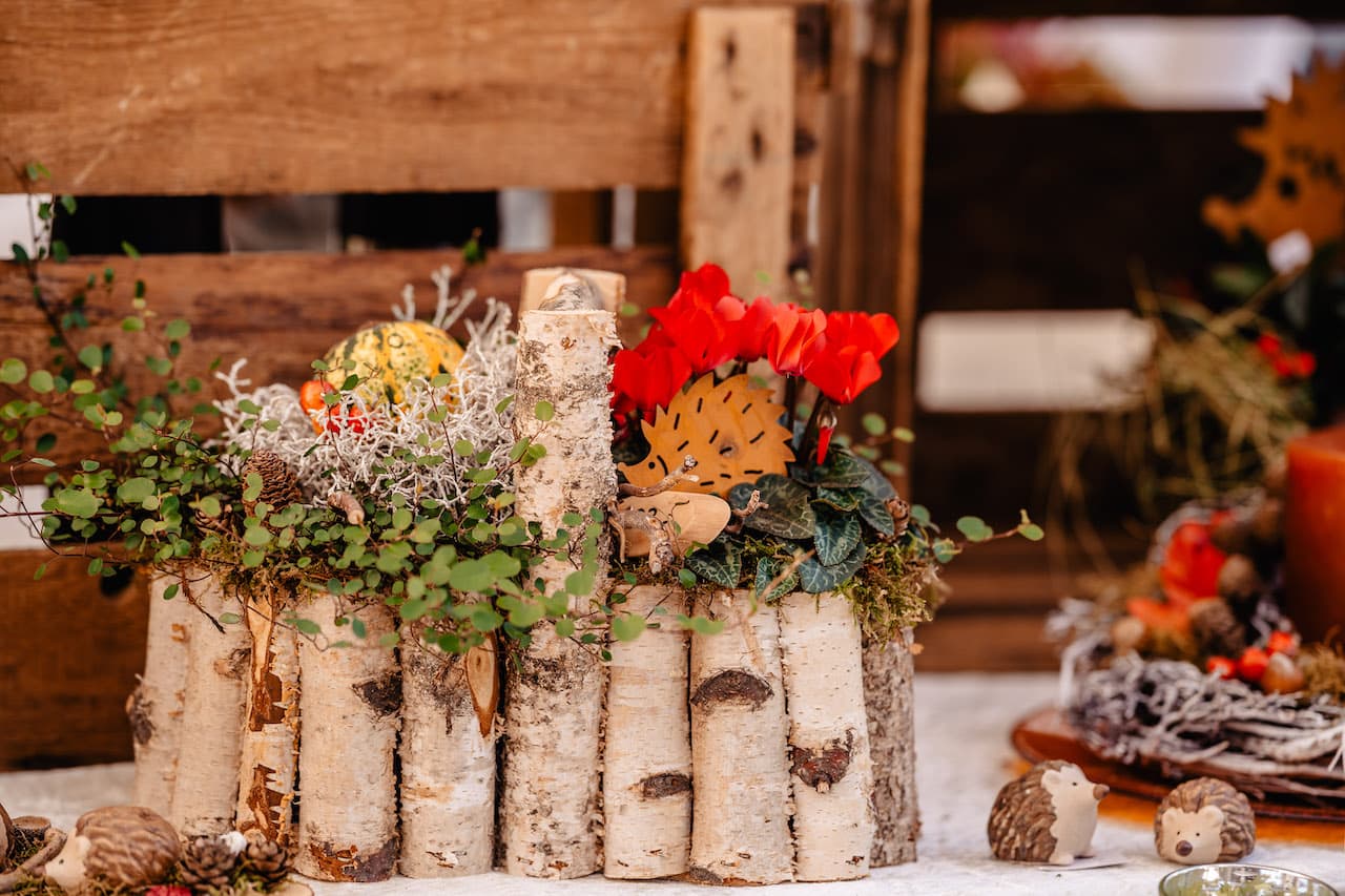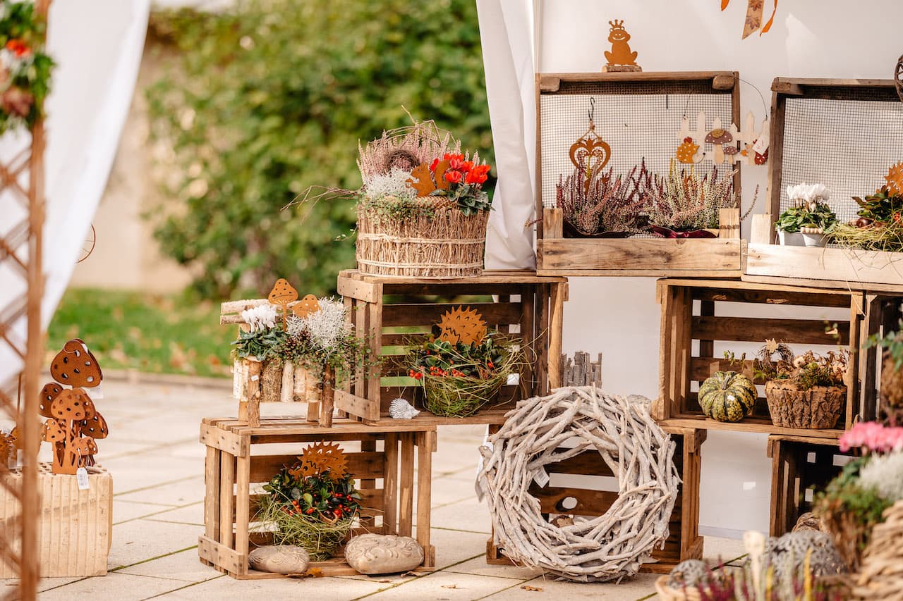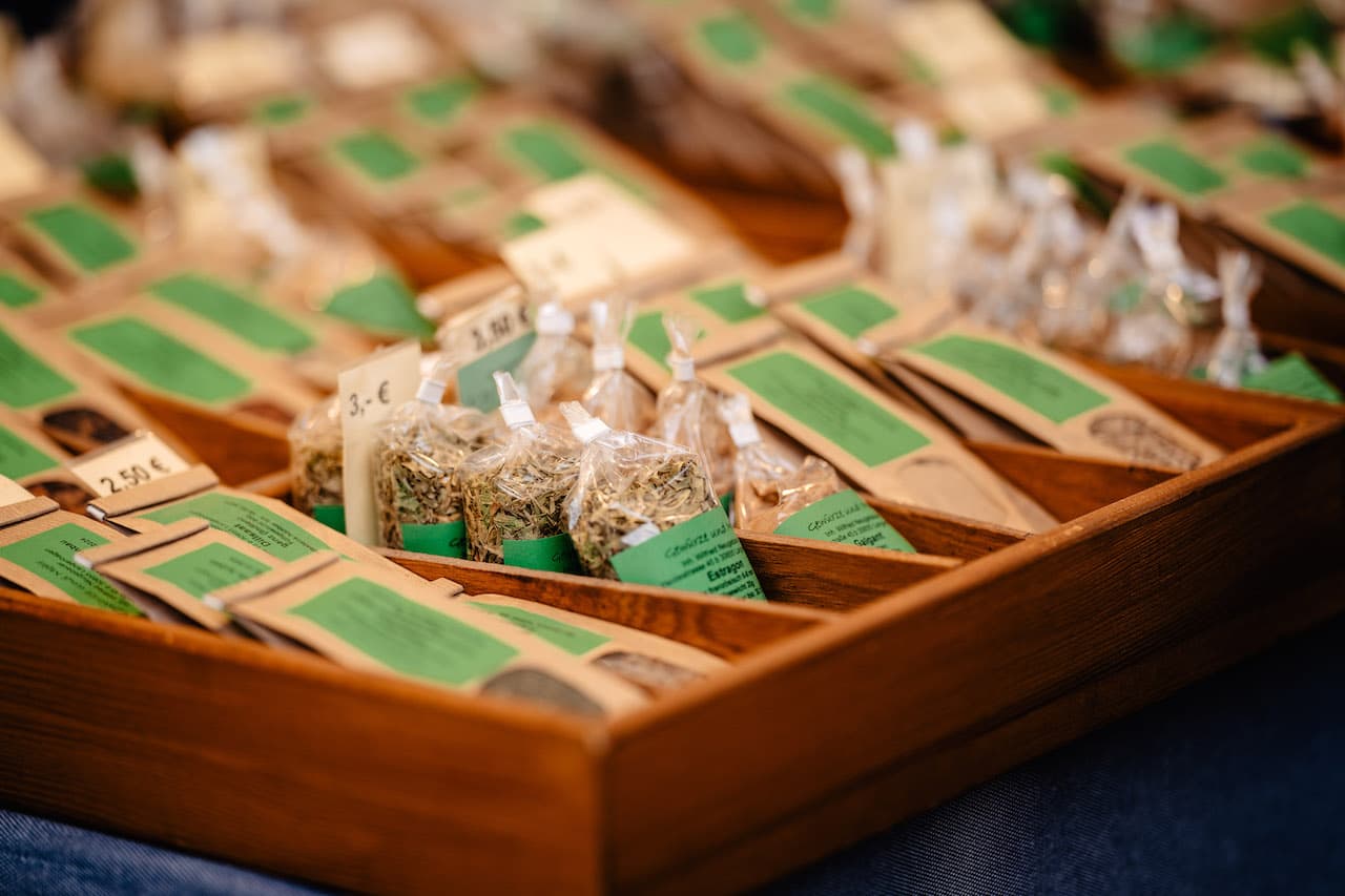 So bunt wie das Laub im Kurpark ist das bäuerlich-ländliche Angebot der rund 80 Aussteller:innen: Der Duft von Lavendel und Heidekraut liegt in der Luft, Gartengerät kann ebenso ausprobiert wie direkt mit nach Hause genommen werden und stilvolles Kunstgewerbe sowie wollwarme Bekleidung stimmen auf die hyggelige Jahreszeit ein.