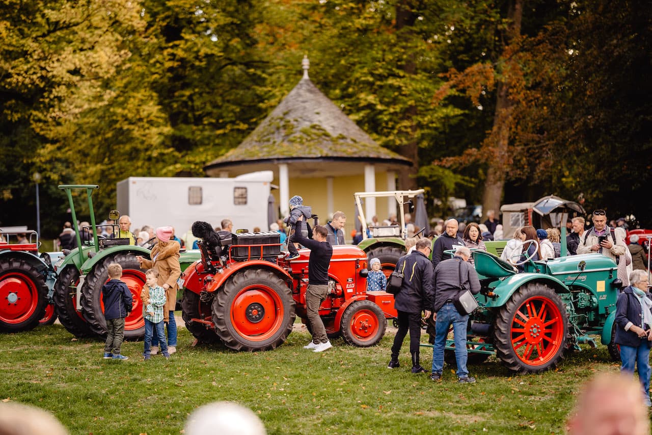 Der Kurpark wird an beiden Nachmittagen zur Bühne, z.B. für das Akustik-Duo Fernholz & Prescher, die Folklore Band The Fiddling Lads und Singer/Songwriter Patrick Lueck. Die leuchtende Schaumburger Tracht ist eines der Highlights des herbstlichen Markts: Tosender Applaus ist den Trachtgruppen sicher, wenn während der traditionellen Bauerntänze die bunten Röcke aufleuchten. Am Sonntag sind in liebgewonnener Tradition die Treckerparade und die Gänsekapelle zu Gast.