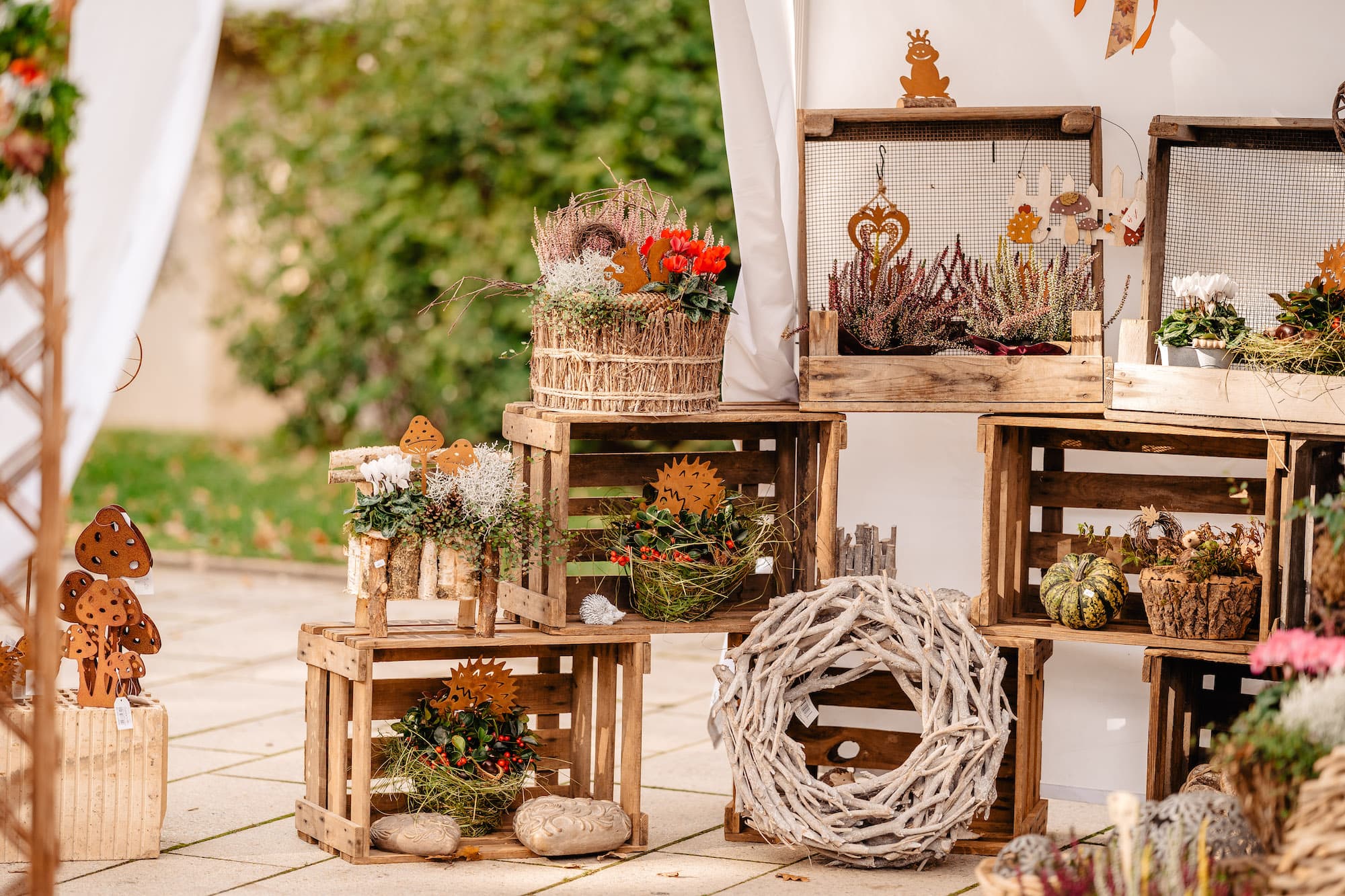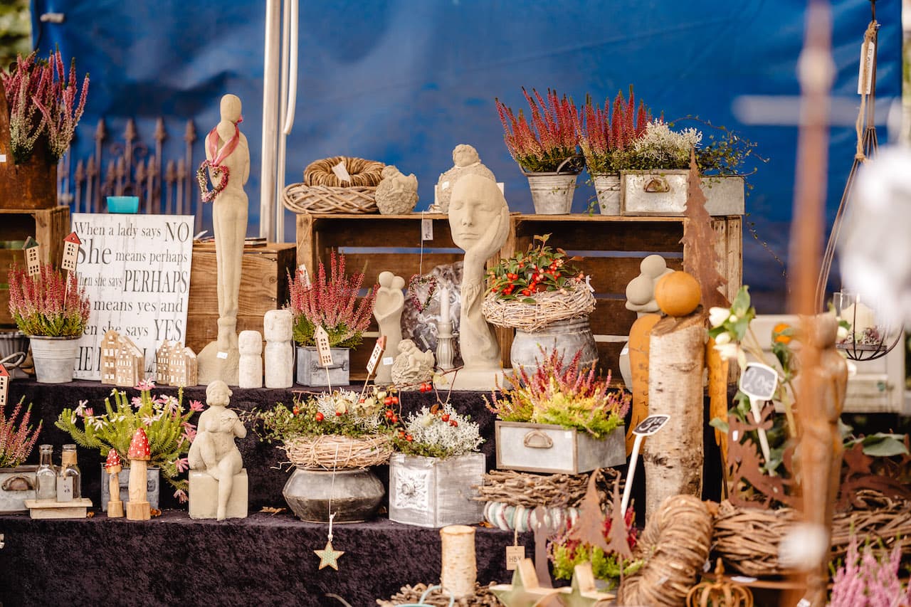 So bunt wie das Laub im Kurpark ist das bäuerlich-ländliche Angebot der rund 80 Aussteller:innen: Der Duft von Lavendel und Heidekraut liegt in der Luft, Gartengerät kann ebenso ausprobiert wie direkt mit nach Hause genommen werden und stilvolles Kunstgewerbe sowie wollwarme Bekleidung stimmen auf die hyggelige Jahreszeit ein.